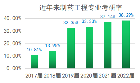 近年制药工程本科专业考研情况:考研升学率逐年升高,2022年考研成功率为38.29%。